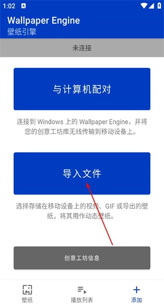 2、进入功能选择界面,查看与计算机配对、导入文件等相关选项,点击“导入文件”选项进入文件选择页面。