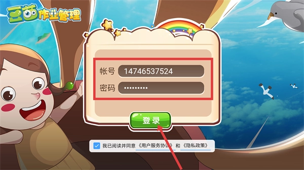 2、在【豆泡作业管理】的登录界面,输入【账号】和【密码】,勾选相关协议后点击【登录】按钮,即可完成账号登录流程。
