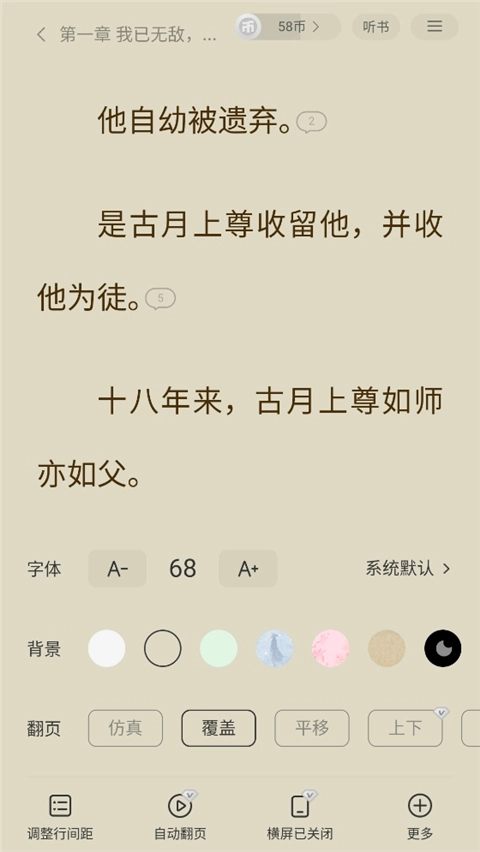 5、我们能够按照自身的习惯,对字体、背景色、翻页等相关内容进行设置,