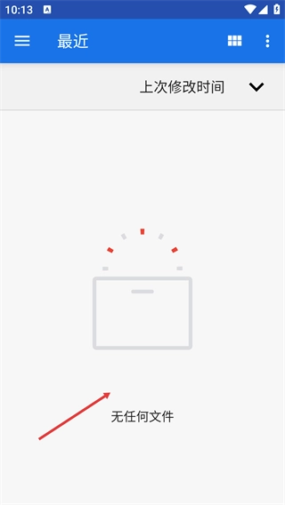 4、进入【最近】页面后,系统默认按照【上次修改时间】进行排序;若当前页面没有文件,会显示“无任何文件”的提示信息。