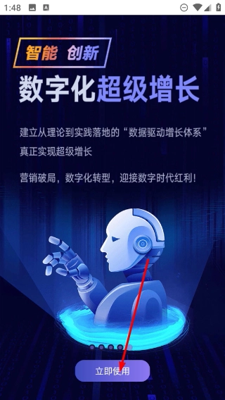 2、在“数字化超级增长”的引导页面,点击【立即使用】按钮,即可进入平台的后续配置流程。