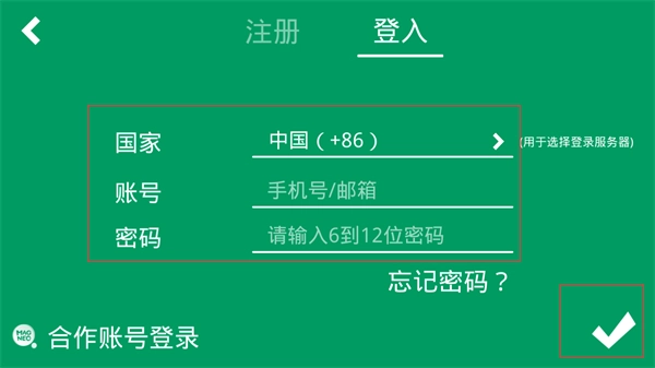 3、在【登录】页面,选择【国家-中国(+86)】,输入账号和密码后点击确认,即可完成登录操作。