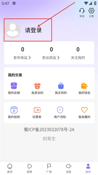 2、在个人页面点击【请登录】区域,即可进入账号登录相关操作页面,关联商品交易等功能模块。