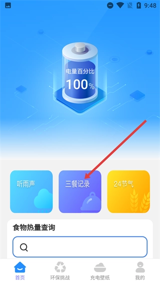 1、在应用首页,点击【三餐记录】功能按钮,即可进入三餐记录的日期选择界面。