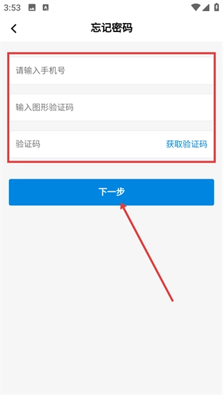 3、在【忘记密码】页面,依次填写【请输入号】【输入图形验证码】【验证码】,完成信息填写。