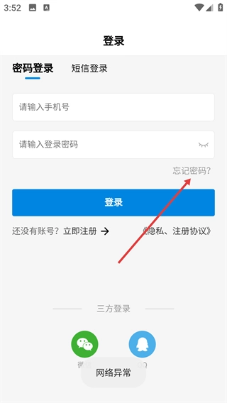 2、在登录页面,要是忘记了密码,点击【忘记密码?】这个选项,就能进入密码找回的操作页面。