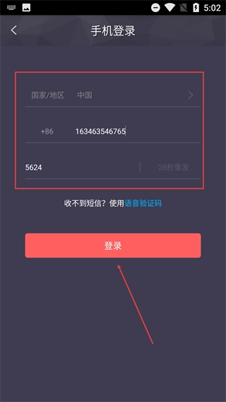 3、在登录页面确认【国家/地区-中国】,输入号码与验证码后,点击【登录】按钮即可完成登录操作。