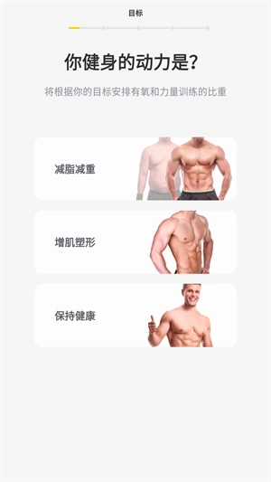 2、在这里选择健身的目的和输入身体的各个状况;