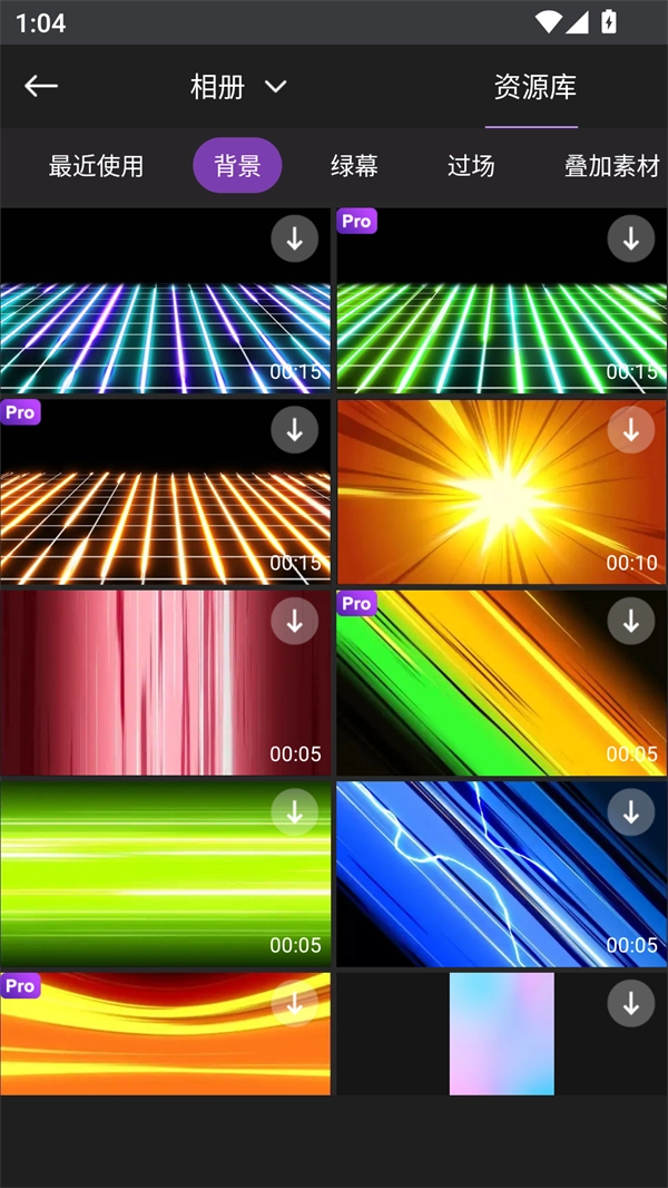 2、支持导入本地的视频或图片素材,也能从资源库中挑选开场动画模板。因为当前版本已解锁所有功能,所以所有VIP专属资源都可以使用,不必担心权限方面的限制。