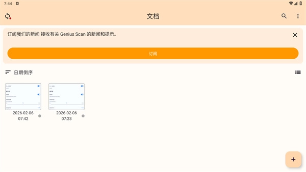 3、接着点击右下角的加号,添加图片或文档,添加完成后就能开始扫描了。