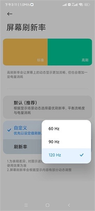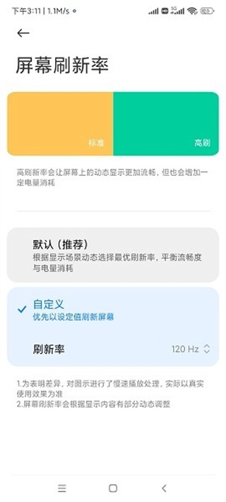 1、系统会依据应用场景自动切换刷新率,便于用户在日常使用过程中了解当前屏幕的状态。
