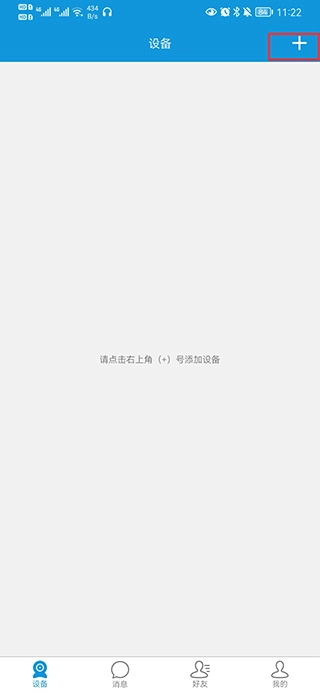1、首先进入界面后点击右上角的加号来添加新设备;