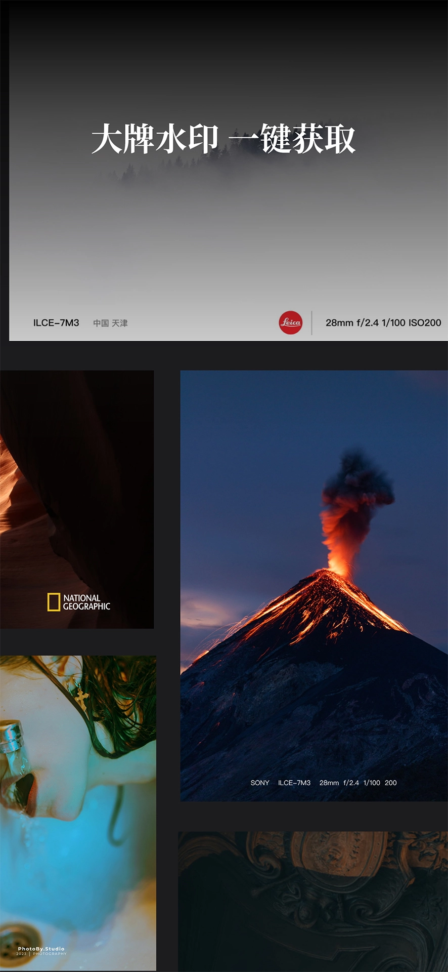 1.配备了别具一格的水印模板,涵盖商务、旅行、家居等各类场景,可满足多样化需求。