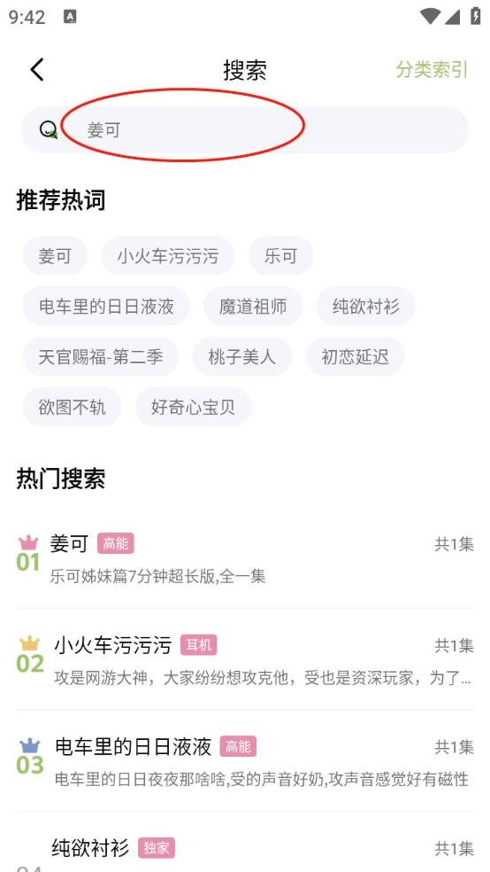 3、分类页面的核心功能是对广播剧展开细致分类,涵盖了时代背景、剧情类型以及性向设定等维度。
