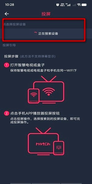 接下来系统会开始搜索设备,请注意要确保电视和当前设备连接的是同一个WiFi网络。