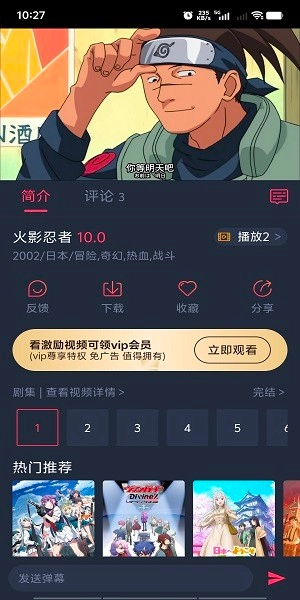 例如搜索火影忍者,找到想要观看的动漫,点击“立即播放”;