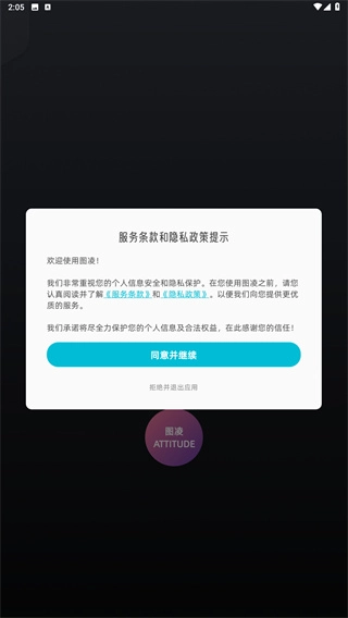 2、在阅读完服务条款与隐私政策的提示后,点击“同意并继续”按钮,就能开始进行操作。