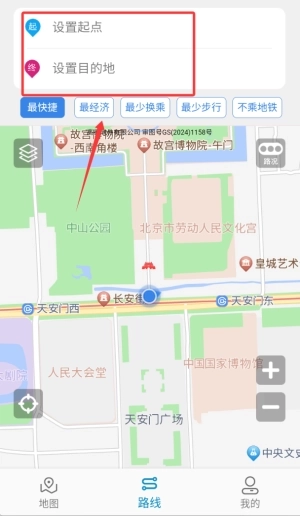 4、确定出行的起点和目的地,精准查找合适的公交路线。