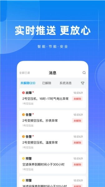 拥有实时推送能力,可把关键的运行数据与故障报警信息即时推送到用户手机上。