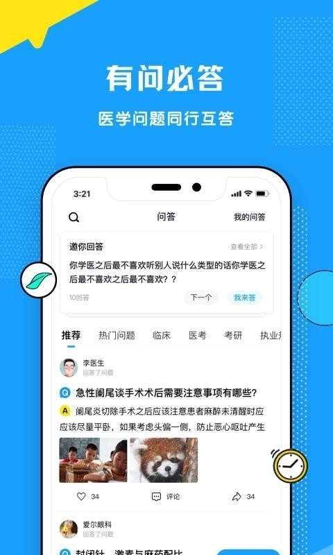 2、支持回答他人提出的问题,可在问答页面随时进行评论,并在线交流医务工作方面的经验;
