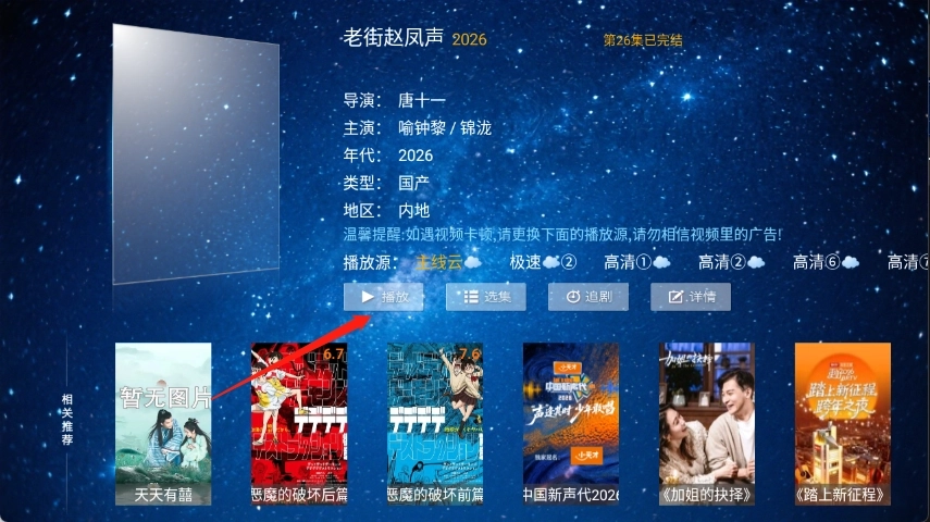 4、点开想看的影片进入详情页点击播放、