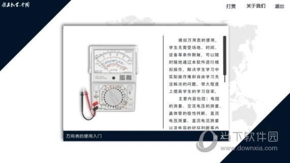 万用表的界面设计极为逼真,几乎和实物一模一样。用户可以用手指滑动屏幕,对万用表模型进行旋转、放大或缩小操作,从而全方位观察它的外观结构。这种沉浸式的视觉体验,能让用户更直观地理解万用表的工作原理。