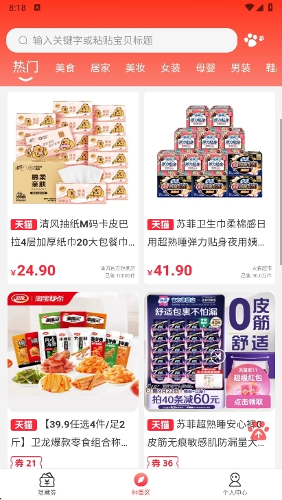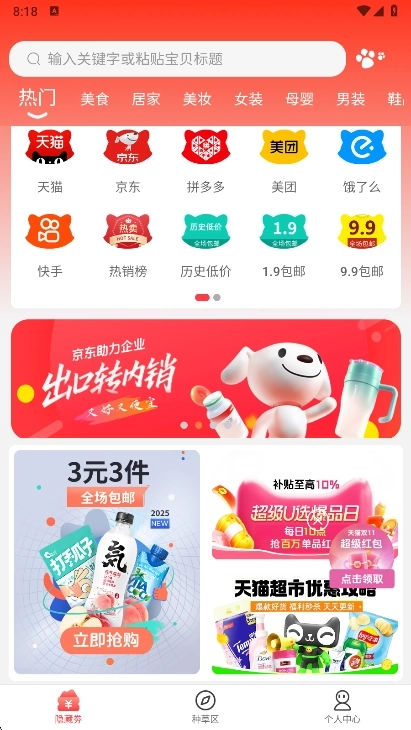 你只需输入商品关键词或者粘贴商品链接,系统就会自动匹配淘宝、京东、拼多多等多个平台的隐藏优惠券,在你下单的时候直接进行抵扣。就像你搜索“洗衣机”,说不定会跳出50元的专属优惠券,再叠加平台的满减活动,能省下上百元呢。