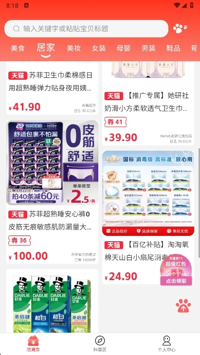 在首页搜索想要的商品,接着点击“领券”按钮,系统会自动跳转到原平台的下单页面,此时优惠券会自动完成抵扣。举个例子,当你搜索“口红”后,点击对应的“领30元券”选项,之后跳转到天猫进行付款时,就能直接享受立减优惠。