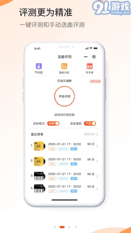 3.一键评测:无需手动选曲,直接开始弹奏就能完成评测,操作方便又快捷。