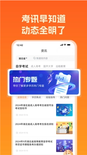 我们会实时发布最新的学历考试资讯消息,让用户能够一手掌握全新的学历考试相关资讯。