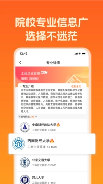 支持用户查看所需的院校信息,便捷选择院校专业。
