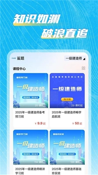 鲨题题库是一款致力于提升学习效率的培训学习类软件,平台核心覆盖建筑工程、医药卫生、财经会计、职业资格等多领域考试的备考资料,可适配多样化的备考场景需求,让考生获取优质备考资源的过程更便捷,进而体验专业的一站式培训服务;考生通过在线筛选课程类别,能快速定位对应的精品课程内容,跟随名师团队的专业讲解开展学习,有效提升知识吸收效率。此外,软件还拥有海量优质题库资源,支持考生随时随地进行习题练习,助力充分利用碎片化时间强化知识点掌握,稳步提升考试成绩。