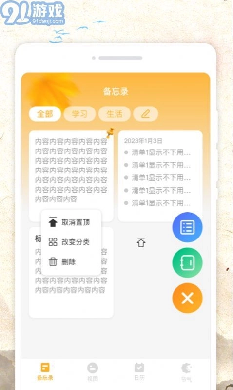 5.管理备忘录:借助备忘录功能,您能够添加、编辑或者删除已记录的事项,便于随时进行查看与管理。