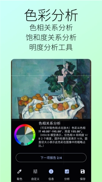 具备色彩分析功能,能够对色相关系与饱和度关系展开智能分析。