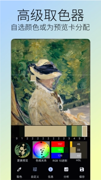 高级取色器,能够帮助用户从各类图片里提取出想要的颜色。