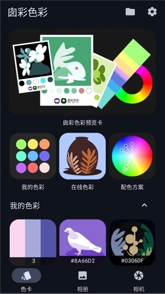 可生成基础色卡与带图色卡图片,同时支持本地色彩数据的备份及导出功能