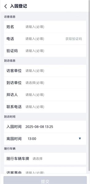2、访客预约管理:具备在线访客预约登记功能,支持访客信息填写、预约时段选择、被访人选定等全流程操作。