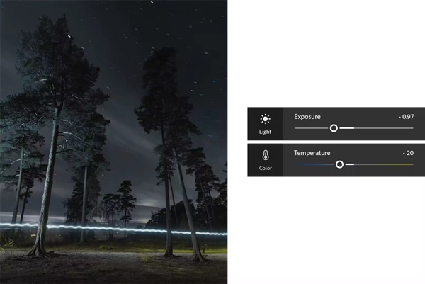 合理调整曝光与高光参数,在提亮暗部的同时,确保亮区细节不出现过曝溢出的情况。借助温度调节滑块,中和城市夜景画面中的暖色偏差,以此还原场景真实色调,或是打造出冷峻的视觉氛围。