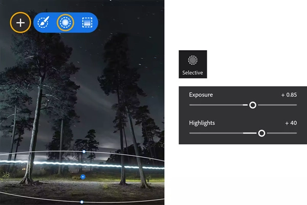 将选择性编辑与径向渐变工具结合使用,能够精准提亮树木、岩石、水面等关键元素。通过对曝光和高光进行调整,可以让局部细节焕发光彩,从而增强画面的层次感。