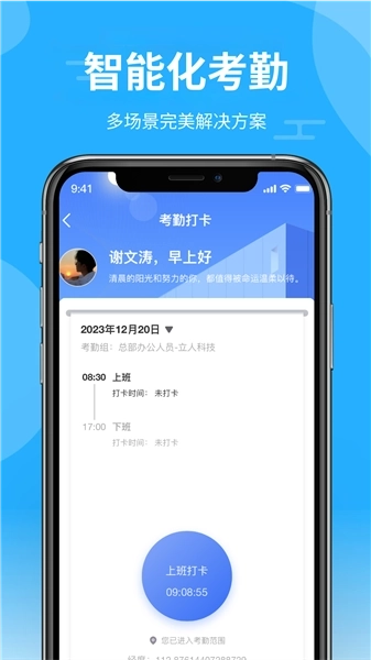 用户只需选择考勤打卡功能,就能在线记录工作考勤状态的签到情况。