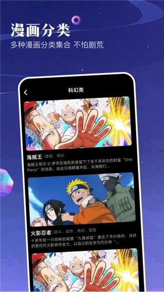 网罗多种漫画资源,你喜欢的海贼王、火影忍者等漫画都能在线追番,没有限制;