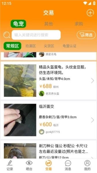 4、在线交易:平台设有交易板块,方便用户在线便捷地进行乌龟买卖,以满足不同用户的交易需求;