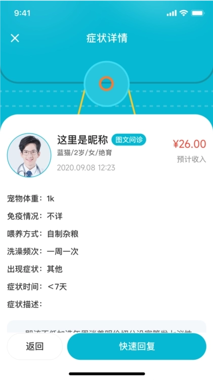 宠研兽医是一款功能强大的兽医服务软件。不管您养的是猫咪、狗狗,还是其他小动物,宠研兽医都能为您提供便捷、及时的兽医咨询与诊疗服务。借助宠研兽医,您能够随时随地和经验丰富的兽医开展在线交流。无论是宠物的健康状况、日常照料,还是突发紧急情况,您都可以在这个平台上向专业兽医咨询,获取即时的解答与建议。
