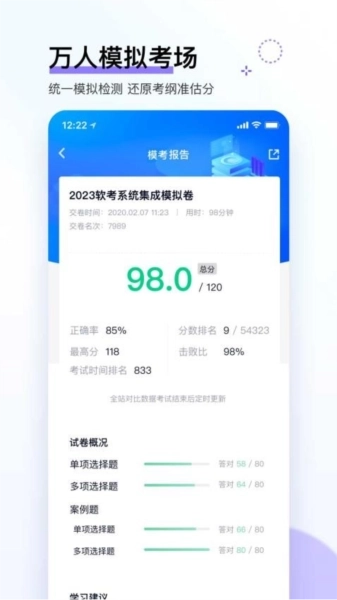 在线参与模拟考试,获取个人考试的具体分数信息