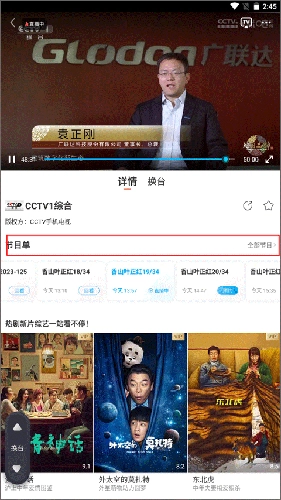 4、系统就会自动切换至横版模式并进入播放界面,在这里你可以进行投屏、换台、查看节目单等操作。
