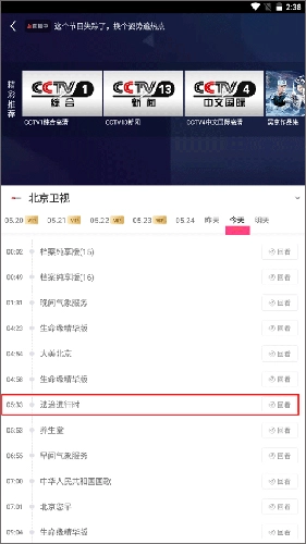 3、挑选你想观看的节目内容,然后点击右侧的回看按钮。