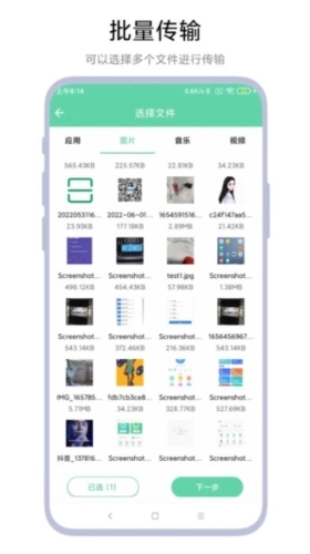 2、挑选文件、应用、图片、视频等进行发送,另一部手机就能选择接收;