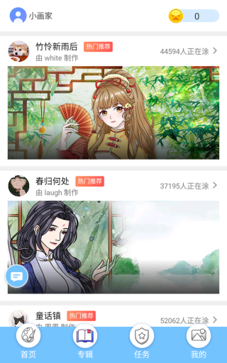 涂色小画家是一款数字填色绘画工具。它会把每张图片划分成不同色块并做好颜色标记,用户只需依据数字提示挑选对应颜色填充即可,操作十分简单,哪怕是绘画新手也能轻松创作出漂亮的作品。软件每日都会更新大量优质线稿,还会按照图片风格分类,用户能根据个人喜好选择图片进行创作。完成的作品可以分享给朋友一同欣赏。