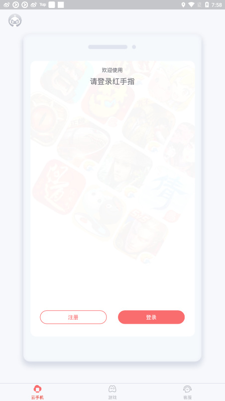 1.红手指安装完成后,打开红手指应用,新用户需点击“立即注册”按钮完成账号注册;