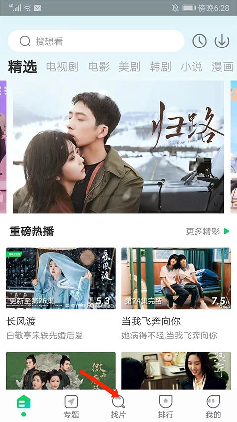 2、进入找片界面后,点击右上角的【放大镜】图标就能开始搜索。